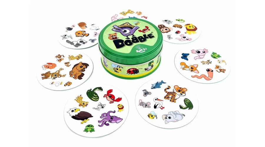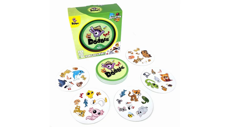 A Dobble Animals pörgős, zsebre vágható kártyajáték 5-féle játékváltozattal. A kártyákon 8-8 különböző állat látható, és bármelyik két kártyán mindig van egy ugyanolyan belőlük. A játékosok feladata, hogy a többieknél gyorsabban megtalálják a közös képeket. A koncentrációt és a reflexeket fejlesztő társasjáték.